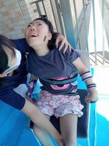 過ぎゆく夏を惜しむように、ココロネ住吉入所フロアでは、テラスでプールイベントを開催しました。