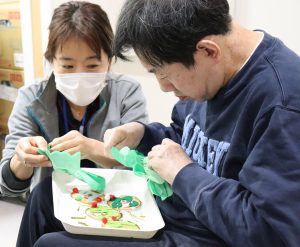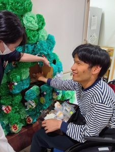 ココロネ恒例の手作りクリスマスツリーですが、今回は2階フロアのメンバーさんたちが製作を手伝ってくれました。
