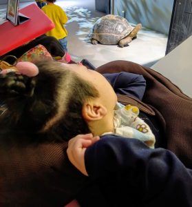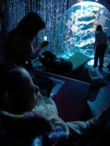 館内では、大きな水槽の中を泳ぐきれいな魚たちを見たり